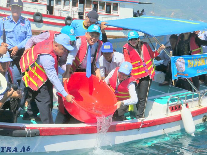 Công ty Yến sào Khánh Hòa: Thả cá giống tái tạo nguồn lợi thủy sản và trồng cây xanh bảo vệ môi trường